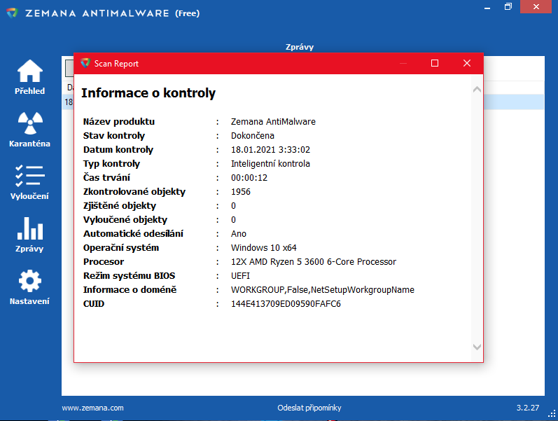 Typ skenování: Skenování hrozeb (Threat Scan)