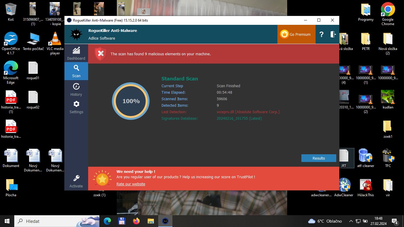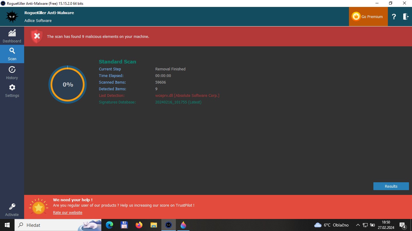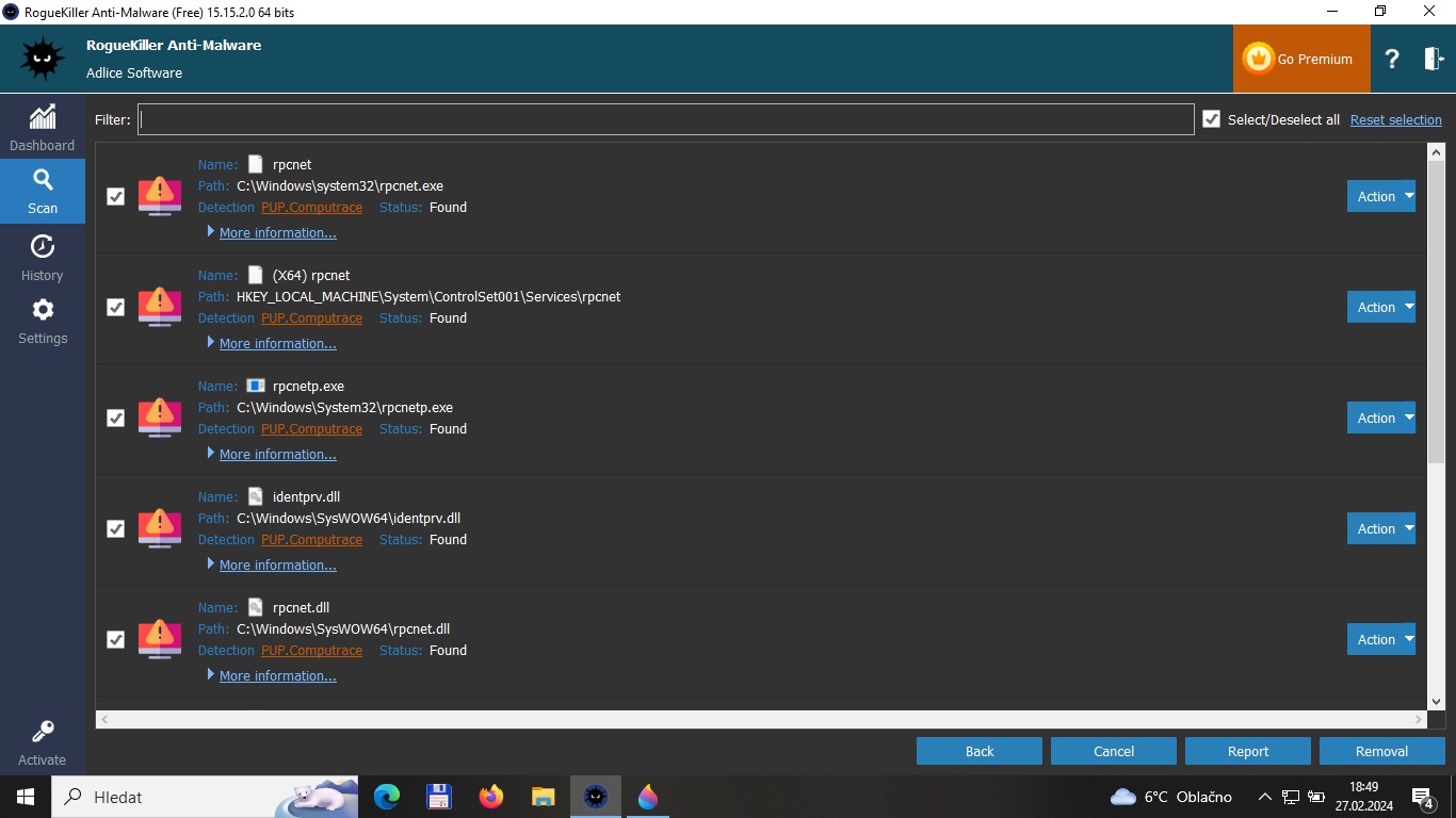 Uděláš sken, najde to nákazy, klikneš na "removal". A pak na "result".