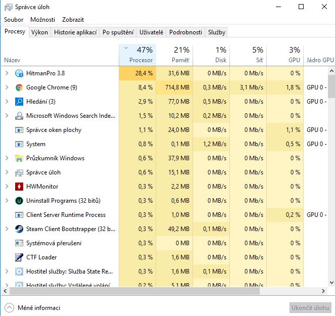 HitmanPro Ti to vytěžuje.. a pamět google chrome.