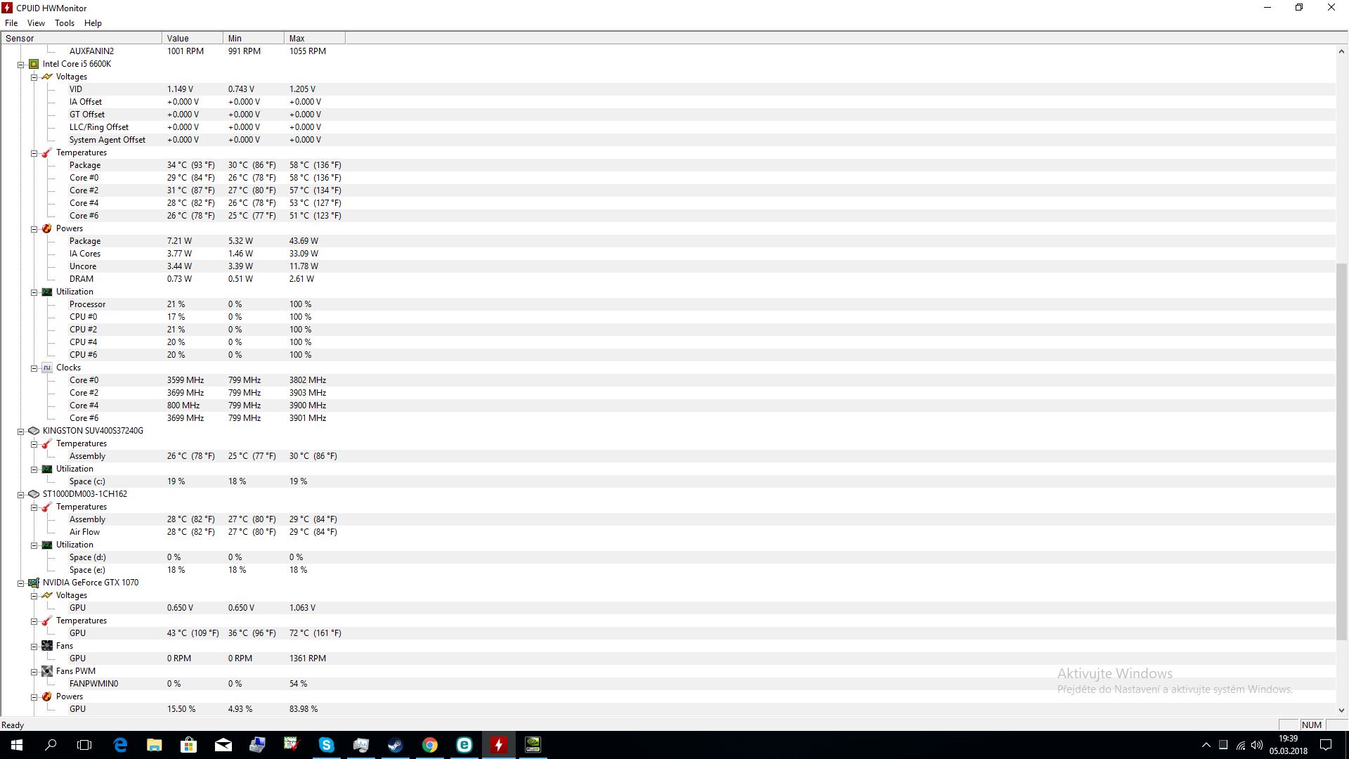 Teď se mi to podařilo vyfotit. Myslím že je to ještě v pořádku to vytížení proto mi to přišlo divné. Možná vyšší teploty GPU. Udělal jsem i screenshot z HW Monitoru s teplotami