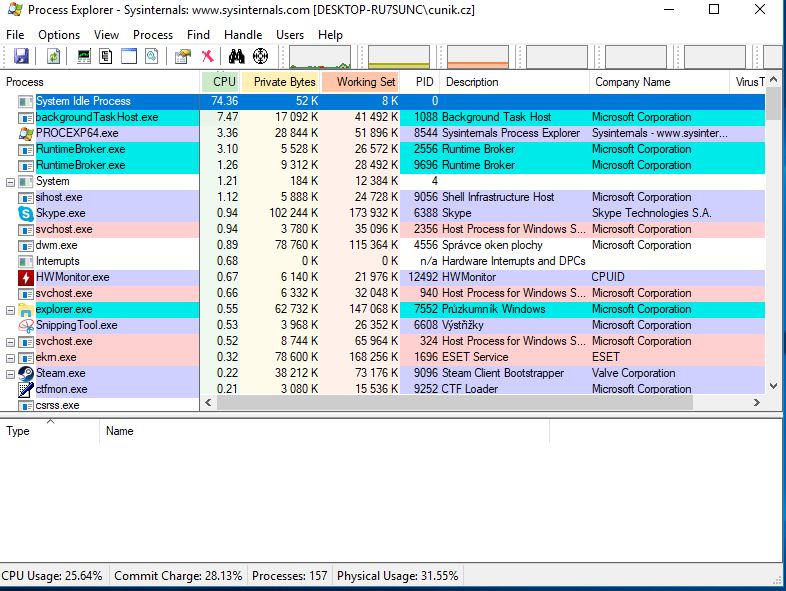 Process Explorer může být velmi platným rozšířením klasického Správce úloh. Krom všech jeho schopností zvládá zobrazit také podrobné informace o procesech a operacích, které jsou na počítači spuštěné (resp. byly spuštěny za běhu Process Exploreru). Mimo jiné se tak můžete dozvědět, které jiné soubory a knihovny každý proces/operace používají a kolik využívají systémových prostředků.