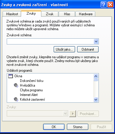 Nemáš žádný zvukový schéma, ani nevidím v Hardware "Řadiše zvuku, videa a herních aplikací". V Správci zařízení nemáš nic se žlutým trojúhelníkem?