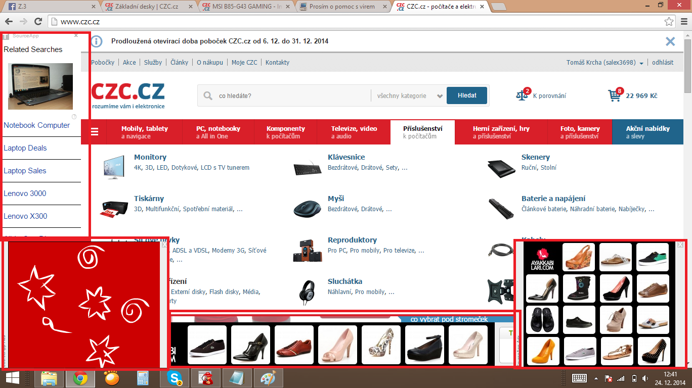 Zapoměl jsem napsat co vir dělá, zkrátka mě totálně sere ! když najedu na nějakou stránku např. czc... zespodu, z boku začnou vyskakovat reklamy dá se dát křížek a zmizí, podle mě se aji spomalilo procházení na stránce + vyskočí na nové kartě nějakej týpek určitě příbuzný jolandy a mele sračky jak vidělávat miliardy :( nevím z čeho to mám ale naposledy jsem si stahoval daemona :(