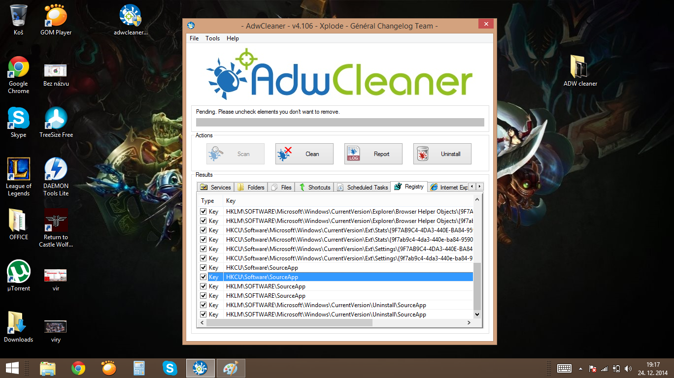 Detection, 24. 12. 2014 19:51:05, SYSTEM, HOME-PC, Protection, Malware Protection, File, PUP.Optional.SourceApp.A, C:\Program Files\SourceApp\bin\7za.exe, Quarantine, [664512545e1e67cfd965ef6421e2b54b]