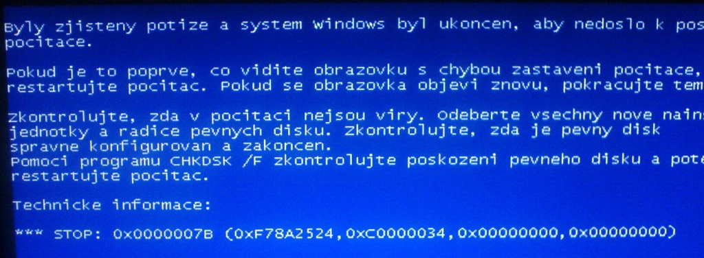 Hodi se modra obrazovka a konec... Viz obr. v priloze.