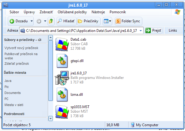 V tom, čo sa vytvorí v Doc. and Settings je priečinok Deployment a jre1.6.0_17 a v ňom toto: