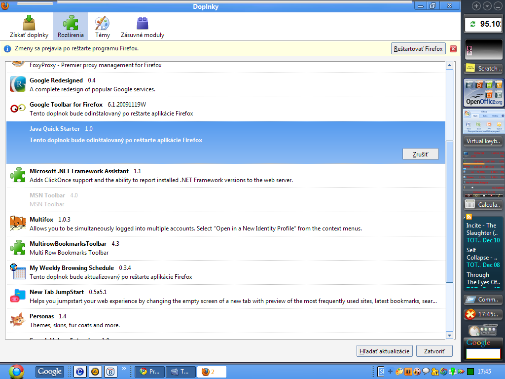Už ani ja :D Odinštaloval som to cez Revo a dočistil CCleanerom a znova som sa pokúsil inštalovať Javu, ale stále mi to ukazuje, tie tabuľky, že už ju mám a potom, že reinštal sa vzťahuje iba na inštalované produkty. Ale keď si chcem nainštalovať freerapid downloader, tak sa nedá spustiť, pýta si Javu, hodí ma stránku Sun, stiahnem chcem inštalovať a stále takto dookola sa ukážu tie tabuľky. Včera som si nainštaloval 16, tá sa dala nainštalovať a skúšal som, či sa sama nezaktualizuje (aj manuálne som skúšal) a potom inštalovať freerapid, ale stále si pýtal Javu, takže ani tá 16 sa asi nenainštalovala poriadne, tak som ju dnes zase dal preč.