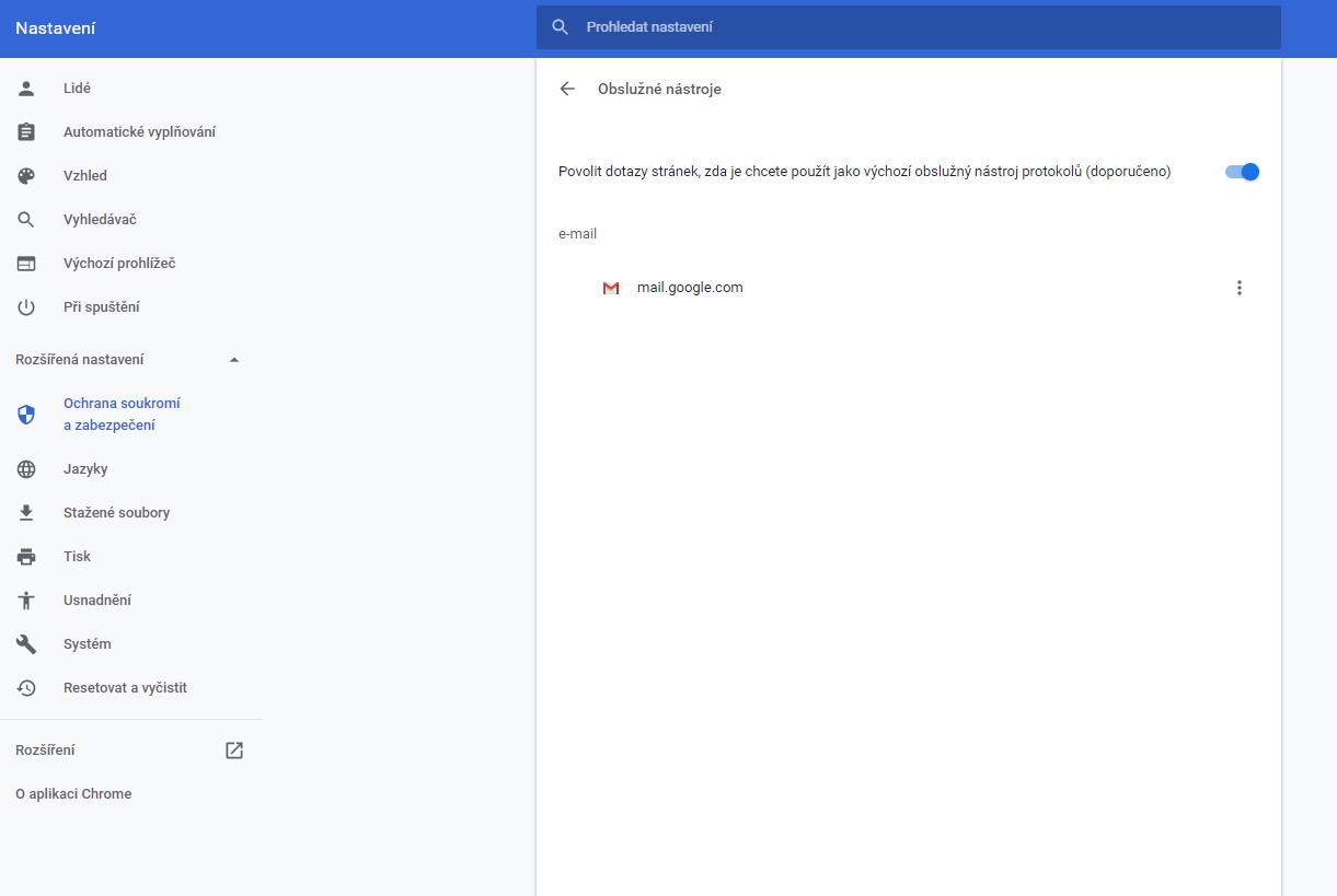 a když klikneš na e-mail ikonu pošty, měla by se otevřít nabídka s víc možnostmi ... pokud ne, odstraň tu preferenci z nastavení v chrome, otevři poštu-gmail a znovu klikni na tu ikonu nahoře v adresním řádku, bude tam asi nastaveno "povolit", klik na hootovo a mělo by se ti otevřít znovu tohle spodní okno s aplikacemi, klik na ikonu pošty .-..
