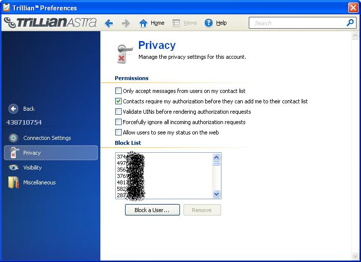 Na ICQ mám nastavenou akorát povinnou autorizaci, vždycky jenom najedu na info o ICQ čísle a hned vidím o koho se jedná.