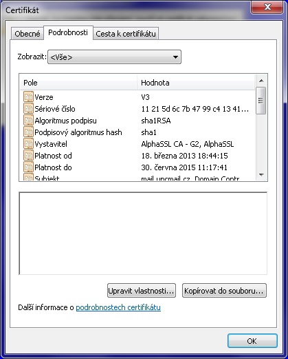 Tlačítkem je také možno "Zobrazit certifikát": ( viz přílohy: 02 Certifikát.jpg, 03 Certifikát.jpg, 04 Certifikát.jpg )