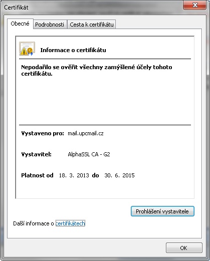 Platnost certifikátu je uvedena: Od 18.3.2013 Od té doby se certifikát zřejmě nezměnil. Proč se tedy hlášení neobjevovalo již na starém PC ?
