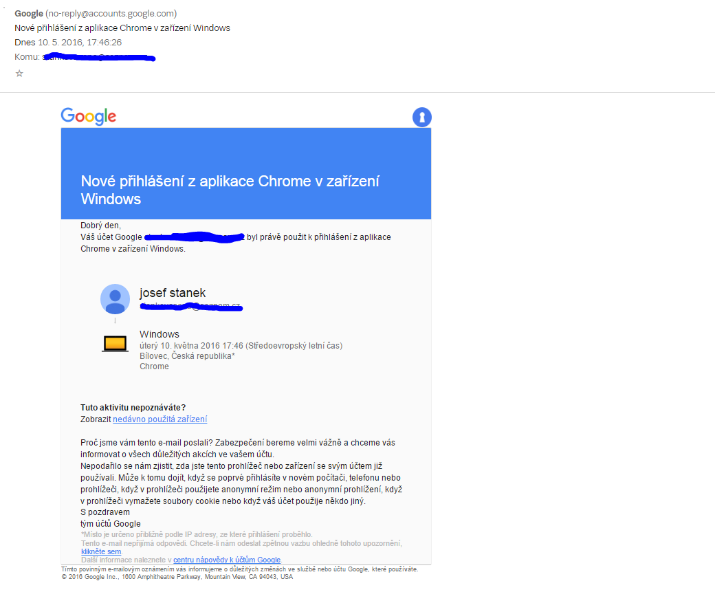Jestliže jste o tuto zprávu nepožádali, ale rozhodli jste se účet používat,