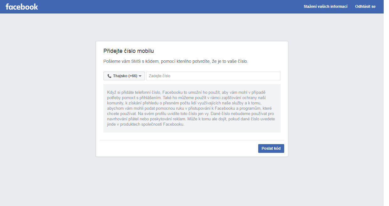 Nema smysl resit pozadavek na telefonni cislo FB, ktery veskery obsah poskytuje na vyzadani tretim stranam