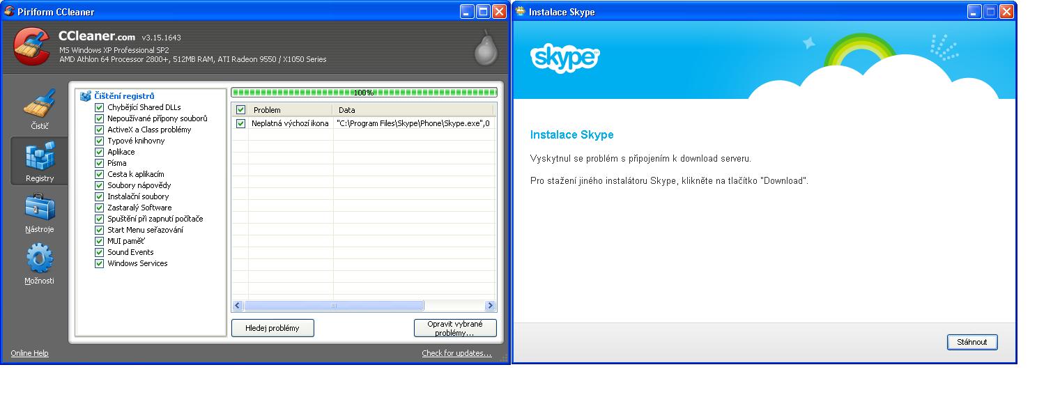 Nedávno mi nešlo přihlásit se na skype...Poté jsem přeinstaloval skype a hlásí mi to tuto chybu....tu složku v C nemužu najít..nwm kde je..a když dám v C-cleaner TAK MI to hlásí chybu. Prosím o pomoc