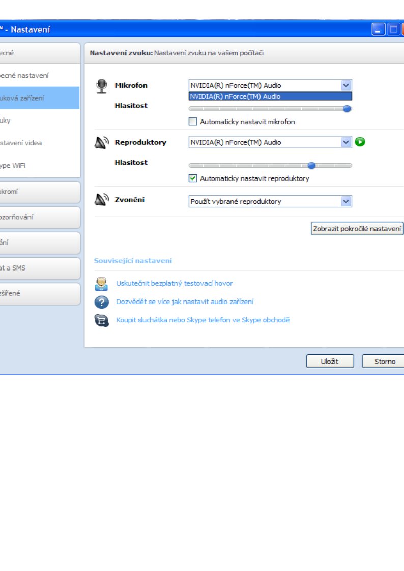 A v čem je tedy chyba? Když na Skype mluvíš, měl by se ti tam pohybovat ten zelený bargraf /ukazatel/