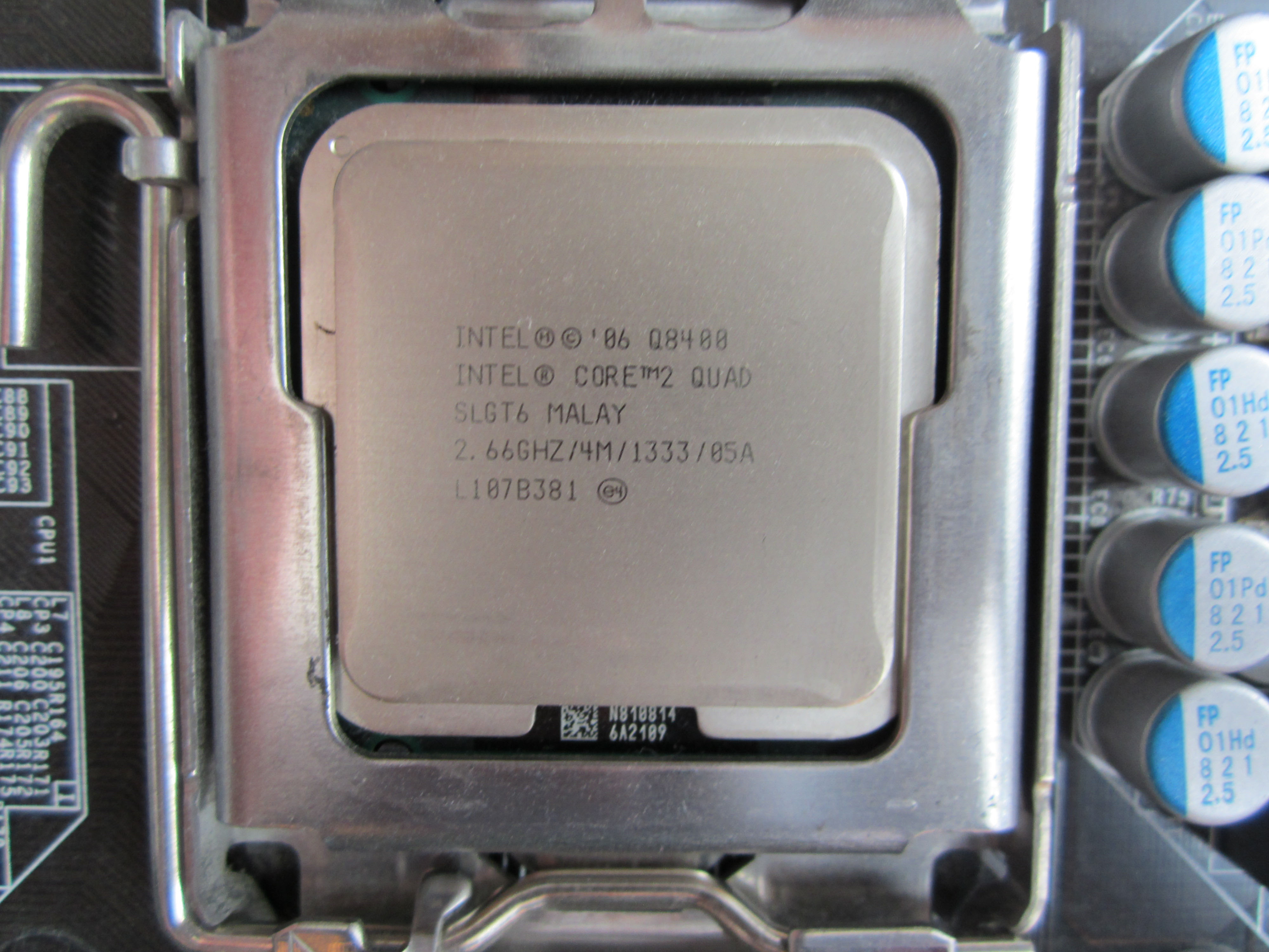 Intel Core 2 Quad Q8400 @ 2.66GHz - běží naprosto stabilně na 3.2GHz na 1.179V, byl chlazen Gelidem - nešel přes 60°C