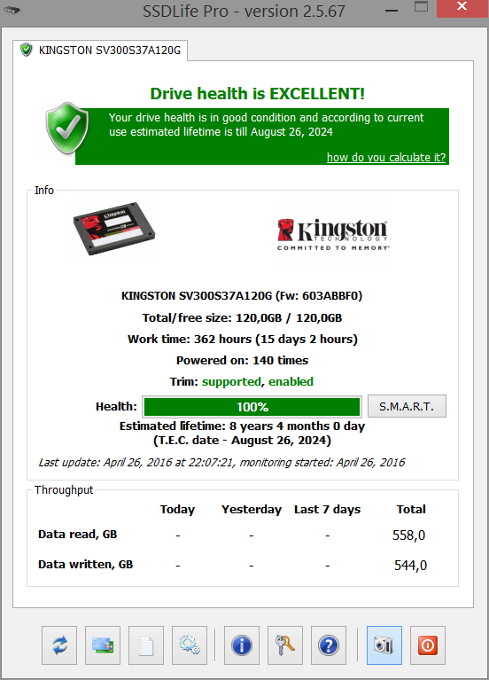 Dále prodám SSD Kingston SSDNow 120GB používaný cca 2 měsíce