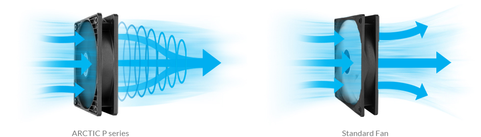 Chladenie je plne zabezpečené, a tak sprevádza počítačovú skriňu chladným vzduchom, ktorý zabezpečujú ventilátory značky Arctic s modelovým označením P14 a P12 140mm/120mm.