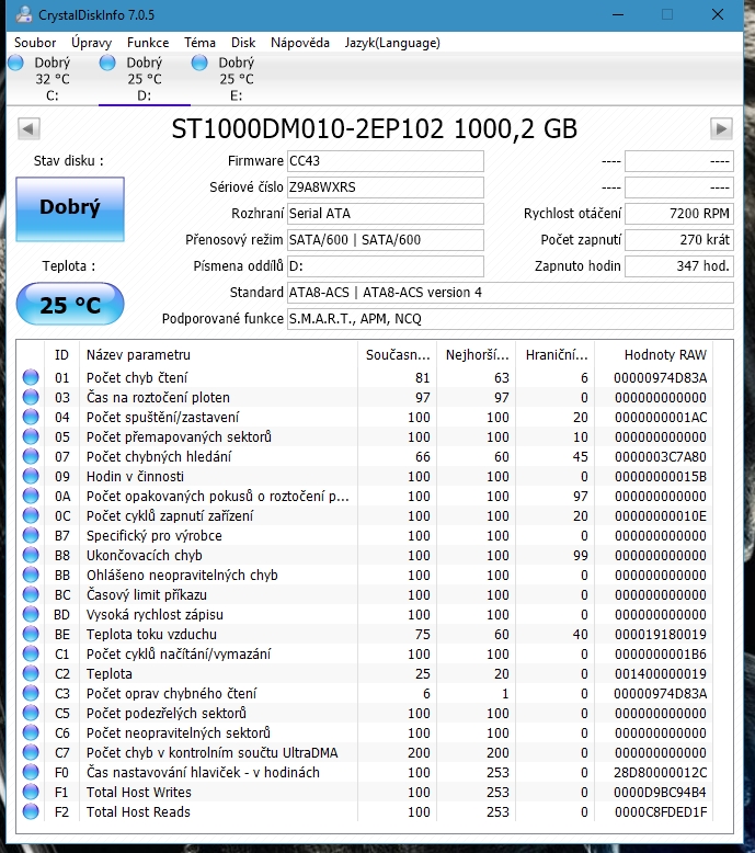 Mám zájem o HDD Seagate 1TB, ale pouze pokud je možné poslat (např. do SZ) log z programu CrystalDiskInfo.