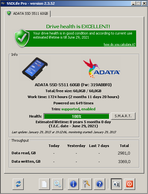 on jistě žádá výpis z CrystalDiskInfo, kde vidíš stav disku, počet zápisů, naběhaných hodin apod...