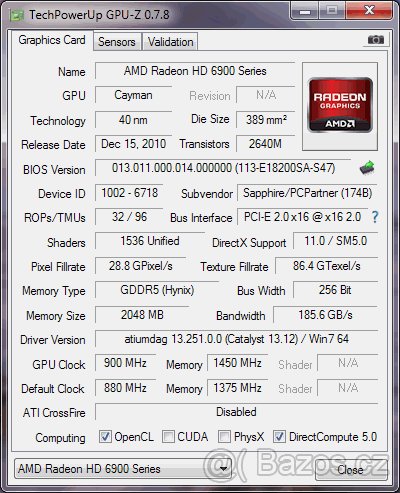 Je o malinko výkonější než r9 270x,kterou jsem měl také donedávna a na základě testů co sem delal jsem si nechal 6970.Bohuzel
