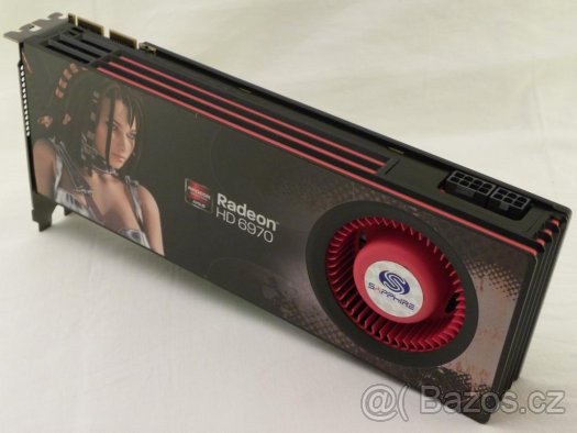 Grafická karta Sapphire Radeon HD 6970 ,nejvýkonější jednočipová HD 6xxx(Cayman),2GB GDDR5,256bit,1536stream procesoru,185gb/s propustnost.