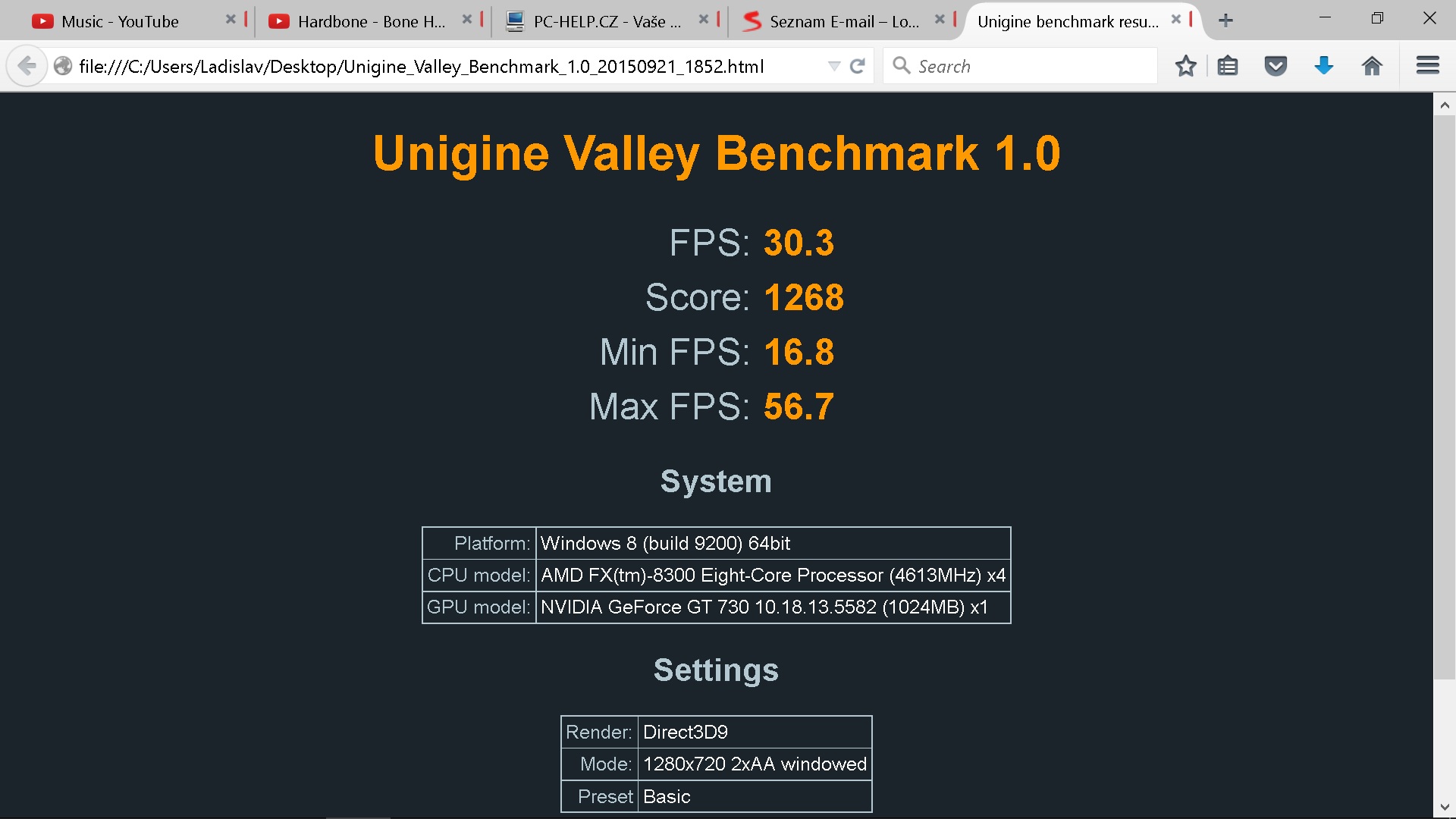V prvním testu bylo nastavený :API: Directx 9....Quality - Medium...2xAA...1280x720