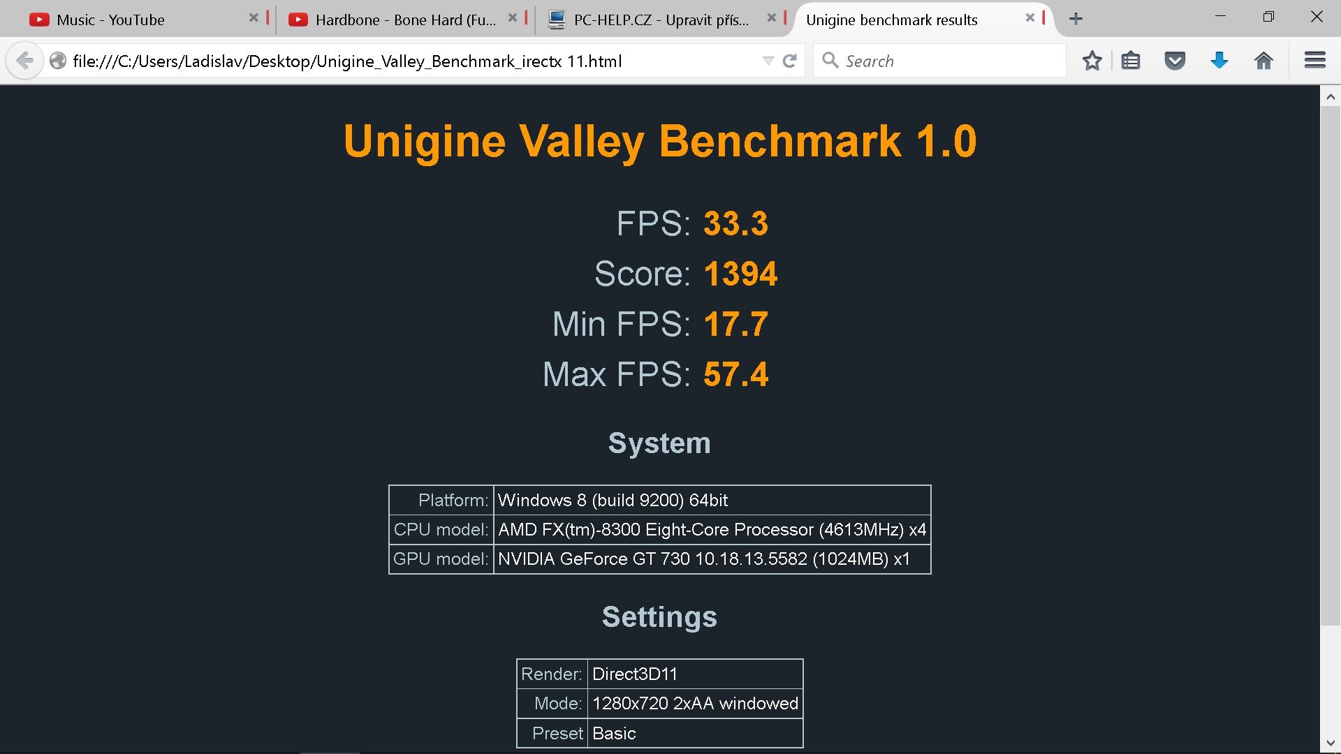 Full hd ta grafika nezvádne. Když dám ultra na full hd, tak je tam sotva 6FPS. Do toho testu jsem dal 720p a medium nastavení protože je to maximum co to zvádne ve většině her.