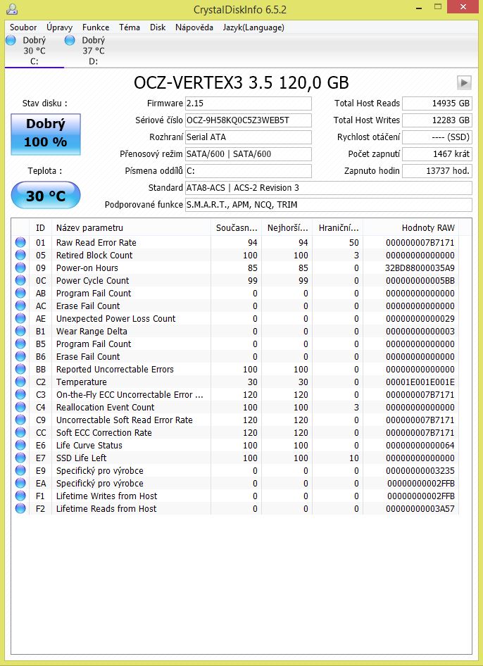 //Příspěvek upraven. Přidány údaje z CrystalDiskInfo.
