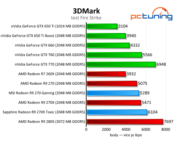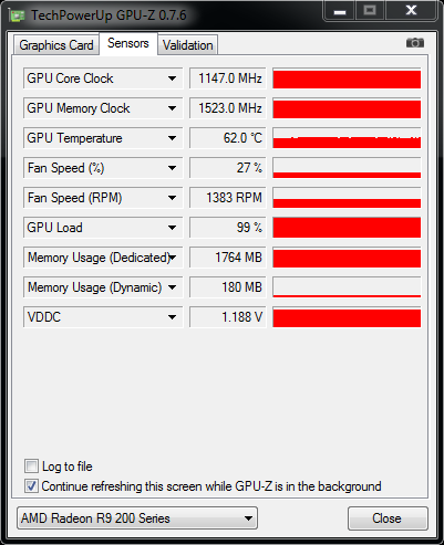 Kromě výkonu karty na základních taktech jsem vyzkoušel také možnosti dodatečného přetaktování. V tomto ohledu mě MSI Radeon R9 270x Gaming příjemně překvapil. Frekvenci jádra se mi ze základních 1080 podařilo stabilně zvýšit až na 1150 MHz. Potenciál pamětí k přetaktování byl o něco menší. Jejich frekvenci se mi podařilo popohnat z 5,6 na 6,1 GHz efektivně při hezkých 65 stupních, přitom ventilátor jel jen na 30% ( upozornuji, že grafika je na takovaní připravena a nezvyšloval jsem napětí, aby nedošlo k poškození karty+ všechny tyto taky byli prověřeny jako naprosto bezpečné. )