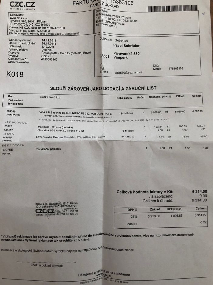 Nastal čas upgrade a proto prodávám následující komponenty. Vše kupované během roku 2015 na alza a czc, tedy již bez záruky, nicméně kompletní balení, faktury a 100% funkční bez závad.