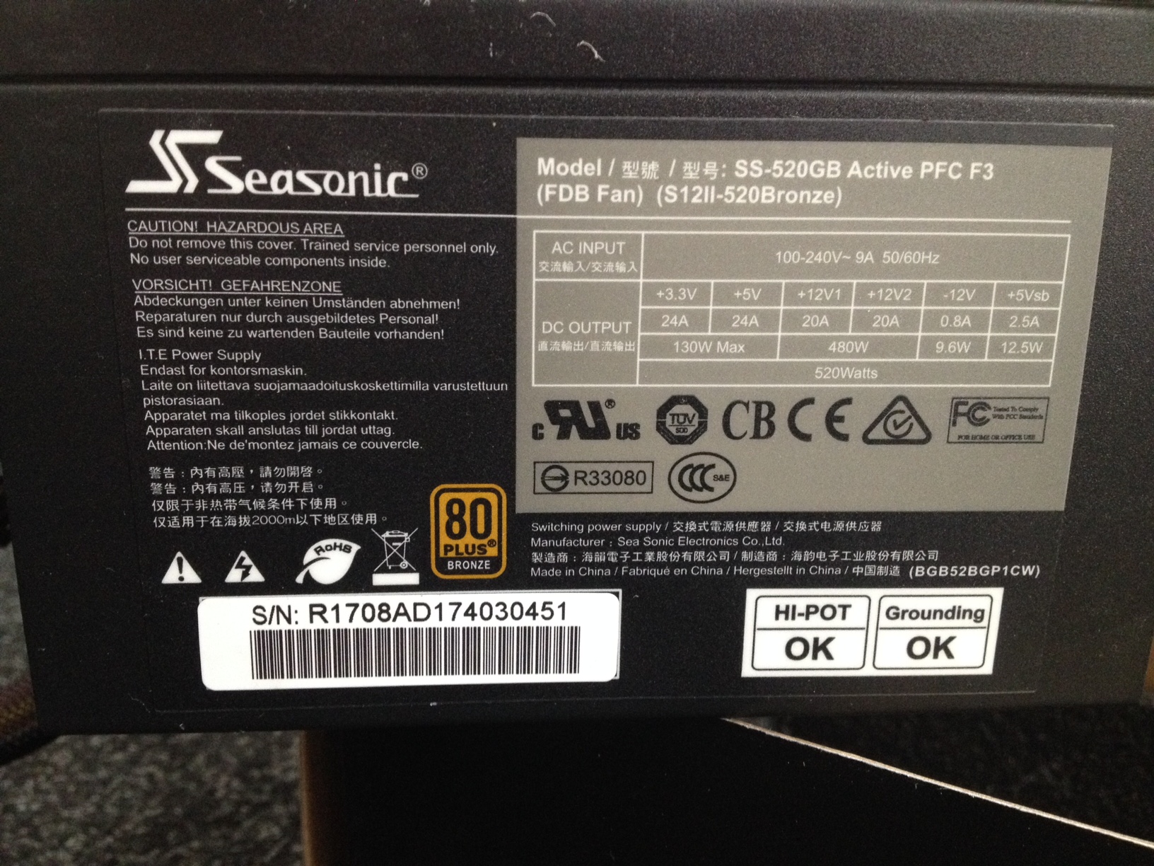 Prodám napájecí zdroj ATX značky Seasonic s výkonem 520 W, 120 mm ventilátor, aktivním PFC (Power factor correction). Otáčky ventilátoru jsou řízeny termoregulací. Typická účinnost zdroje je vyšší než 82%. Kompletní balení. Koupen v lednu 2018 u CZC, v perfektním stavu, důvod prodeje: přechod na větší výkon.