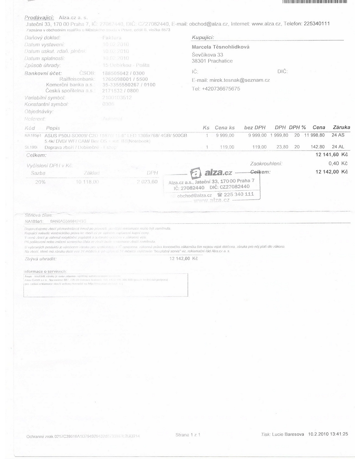 pro zájemce: Záručák (je to vybledlé, ale notebook byl zakoupen 10.2.2010)