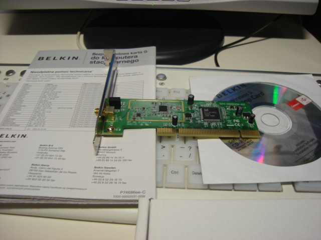 Prodám Wi-Fi kartu Belkin s čipem Realtek 8185L Extensible. Dodám k ní manuál a CD s ovladači. Karta již není v záruce, nehodí se pro Windows 7. Na ostatních OS funguje. Karta je bez antény. Cena: 350,- Kč. Slot PCI-Express.