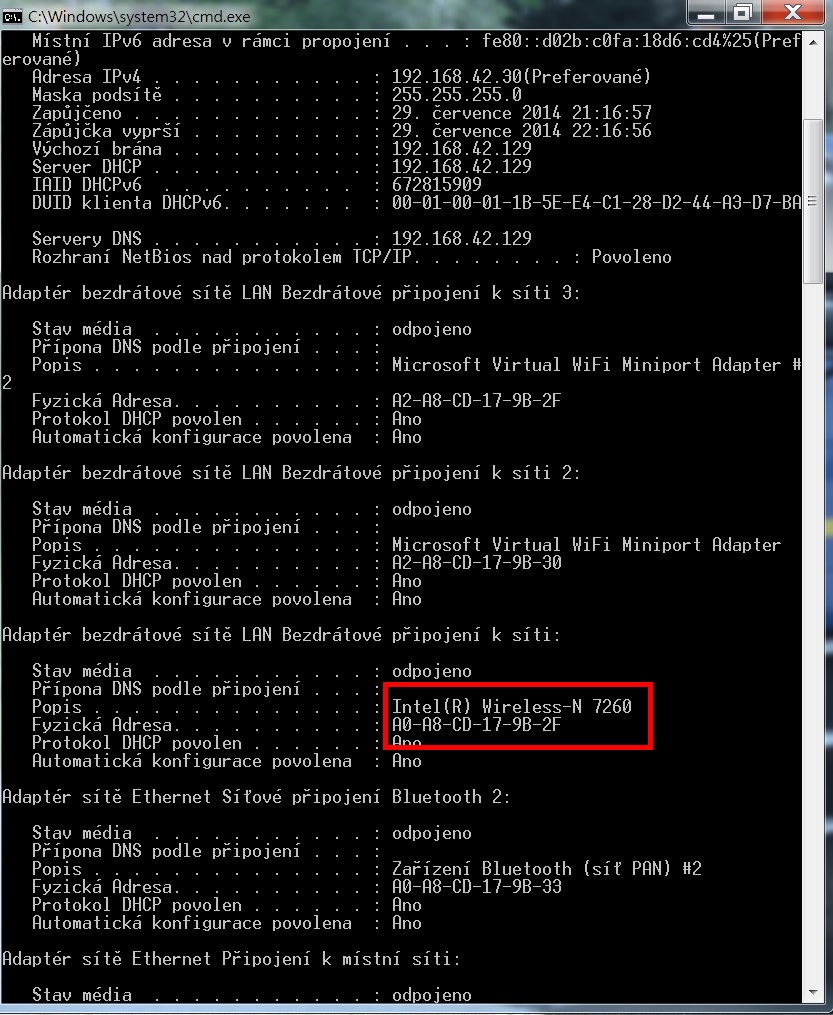 Ještě bych se tedy chtěl zeptat, zda mnou vyznačená mac adresa je ta správná? Je jich tam povíc.