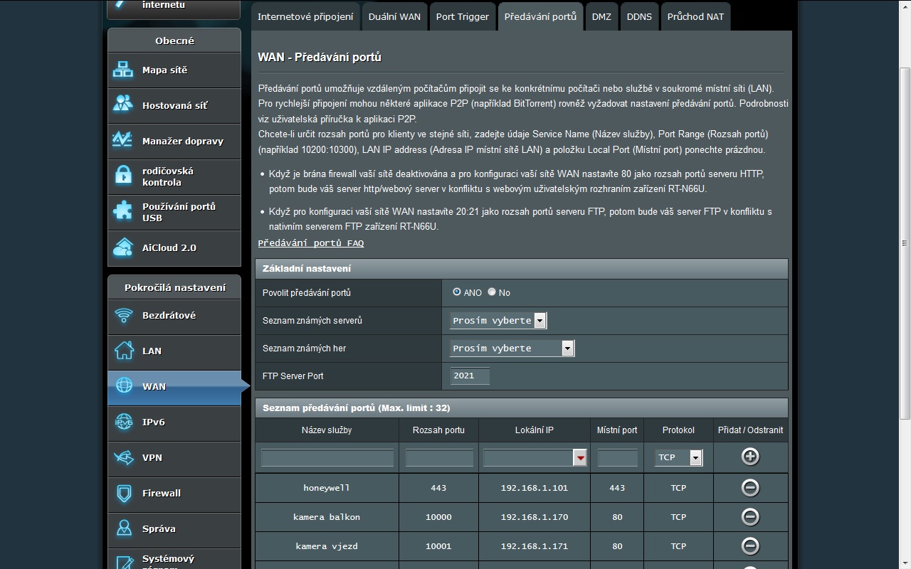 Můžeš sem dát screen té obrazovky s přesměrováním portů? Snad to pomůže.