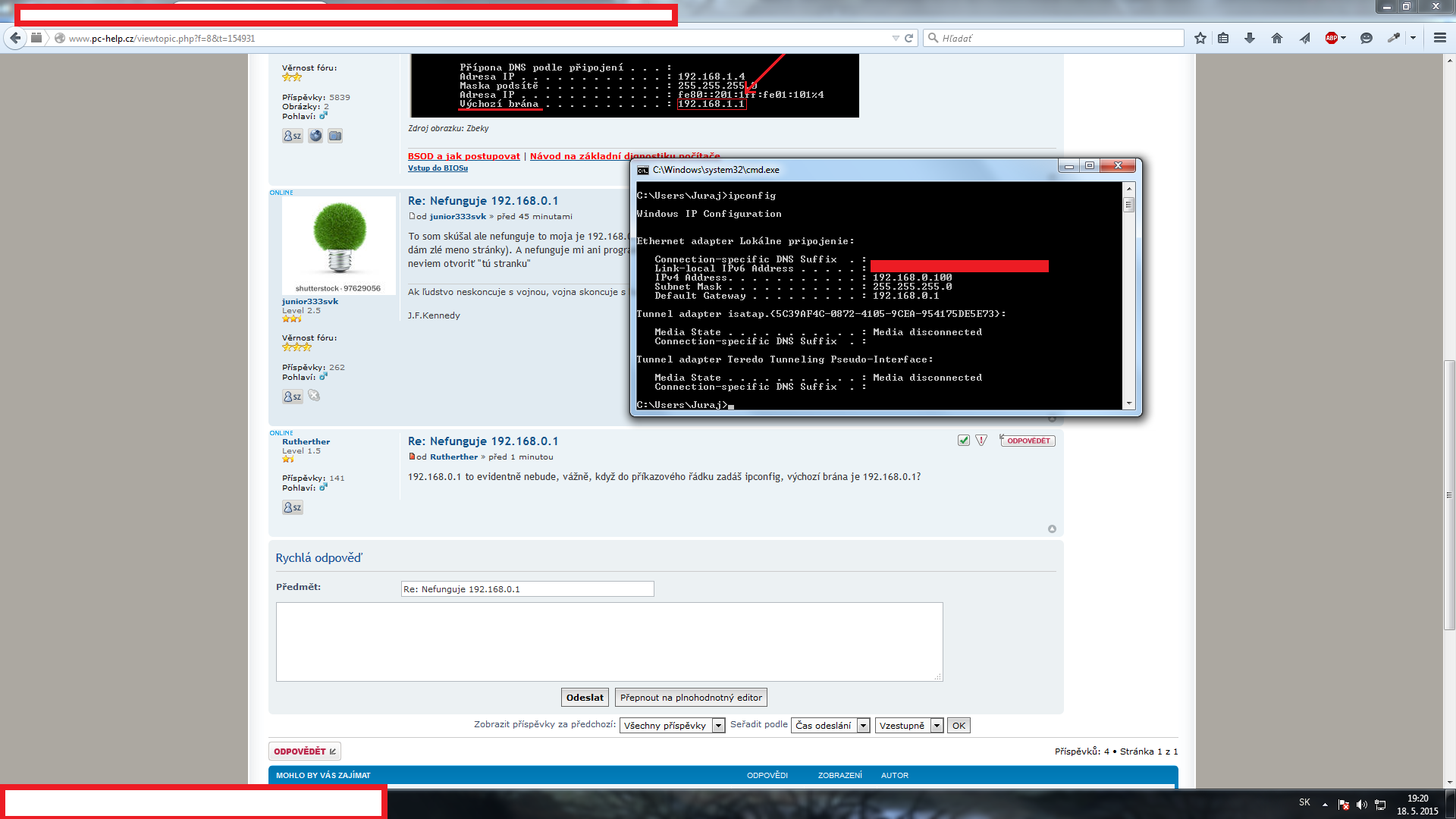 To som skúšal ale nefunguje to moja je 192.168.0.1 napíšem ju do prehliadača a hneď mi vyskočí že sa nedá pripojiť (normálny error ako keď dám zlé meno stránky). A nefunguje mi ani program BvSsh na používanie ktorého je asi potreba pripojiť sa práve tam meno a heslo mám len to neviem otvoriť "tú stranku"