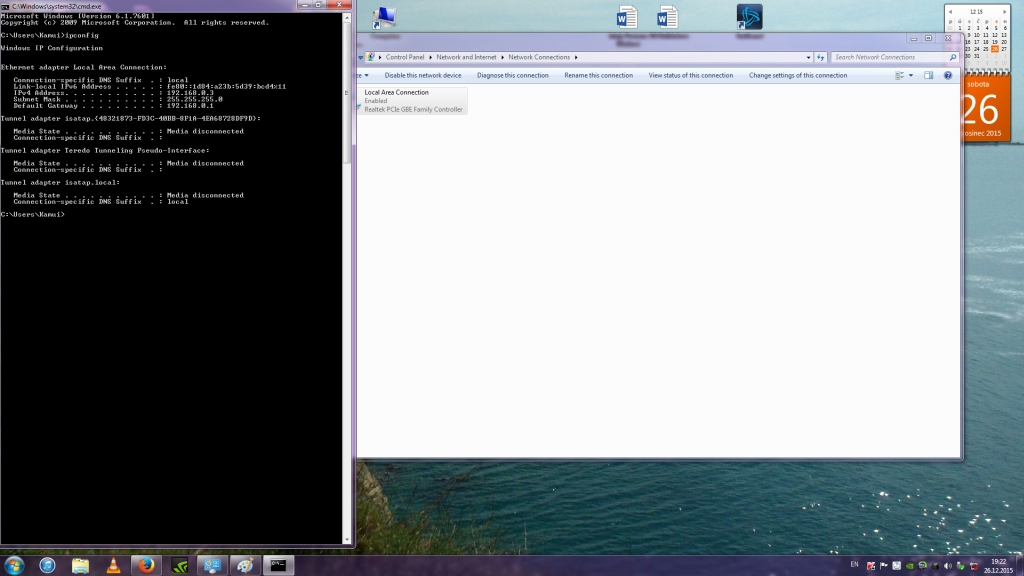 Velice rád bych Vás požádal o laskavost jak mam zprovoznit sit ktorá my vúbec nejde no pritom internet jede mám to i zdokumentovane vo fotkách. Skoušel jsem již rúzne veci jako napríklad odinstalováni craklich registr revier, nebo uplne vyndáni zo site a opetovne zapojeni, pak i router jsem skousel vypojit trafo s elektriky, i vlastni kábel anebo požadal o pomoc či prekontrolováni společnosti od který mam internet a skusili my to dat do tovarniho nastaveni. Nekde na nete jsem se docetl o superantispywere ktery jsem nainstaloval naslo chyby a pak nasledne jsem ich vymazal a samotny program taky vymazal. Jádro myho problemu je to že pred nedavnem jsme se prestehovali a ja ted v patek jsem se dostal konecne na pocitac abych zprovoznil sít od danej spoločnosti ale nejak si vúbec nevím rady. Když si všimnete na fotkach tak ukazatel site v pravo dole je zaškrtlej červenym x jakž to býva normalni když nemúže najit sít což jsem si řikal ok v pohode ješte jsem nemnel zapojen kabel od počitače do wifi-routeru. Pak po zapojeni to pořad ukazovalo doufal jsem že se nenapojim na internet ale nejak houby my to bylo platny a šlo to prave normalne myslim internet. Tak nevim co mam delat všímat si toho fakt neda a udelat to chci abych mněl pokoj. Druha zahadni věc je ta ze sa my neda napojit na domaci sit což je asi normalni když nejde celkově sít. Proto vás žadam o pomoc jestli my mužete nejak poradit Děkuji za vašu ochotu jinak jsem trochu lajkovi člověk ale snad to budu moci pochopit jak neco vložite.