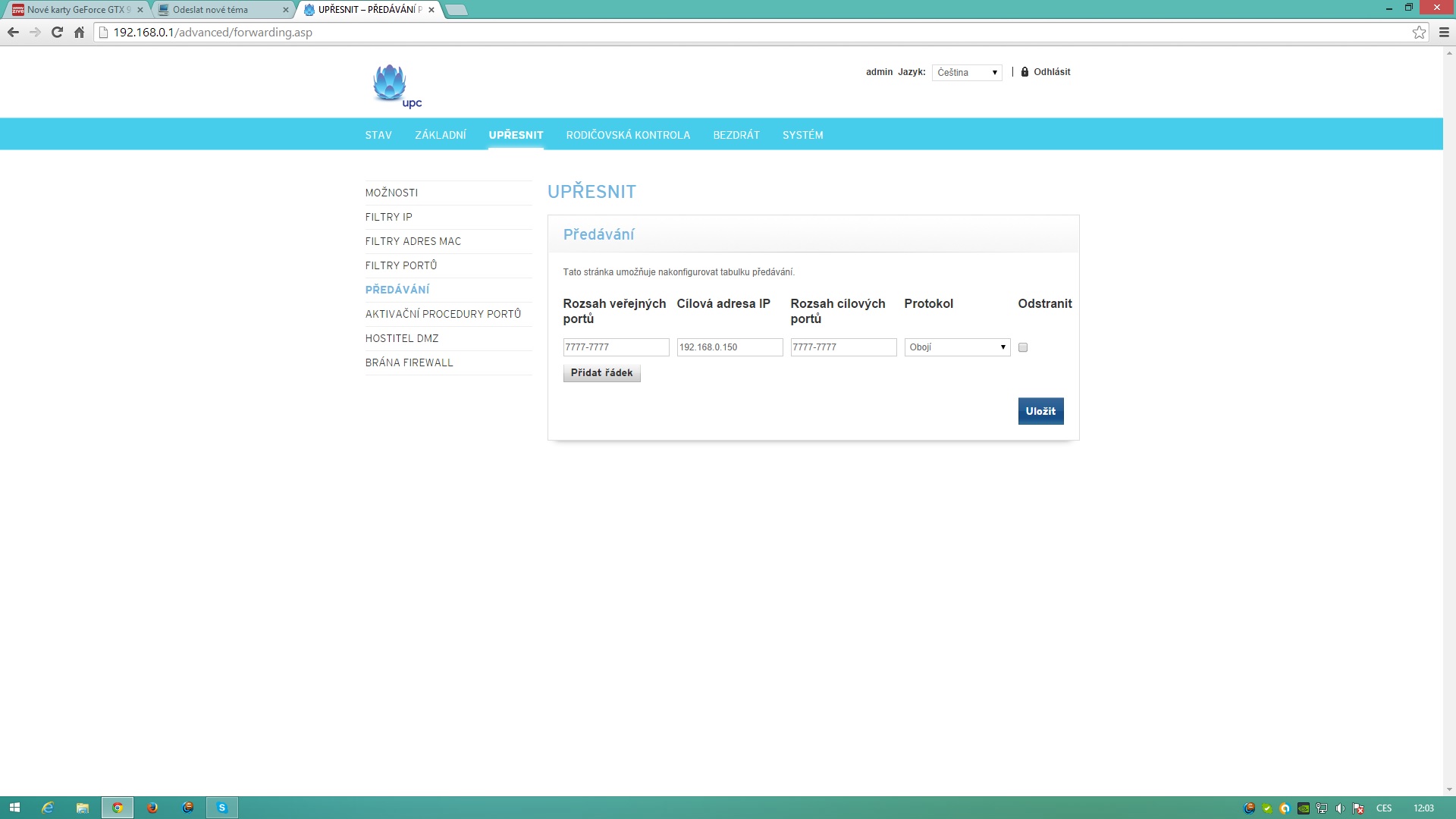 Nový modem od UPC - jak na port forwanding