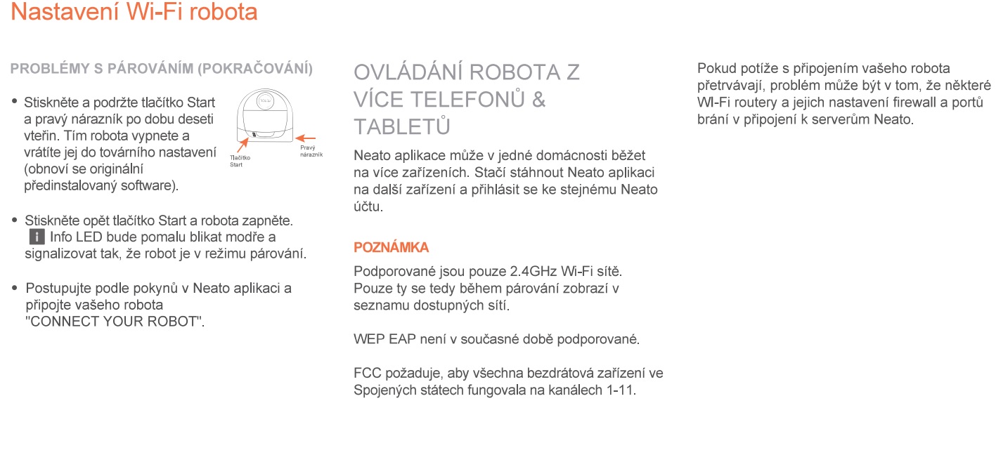 • Aplikace Neato nebude fungovat s předchozími roboty Neato, které nejsou povoleny Wi-Fi (řada Neato XV, řada Botvac nebo řada D.) Pouze kompatibilní s Neato Botvac Connected, Neato Botvac D3 Connected a Neato Botvac D5 Connected Neato Botvac D7 připojen.
