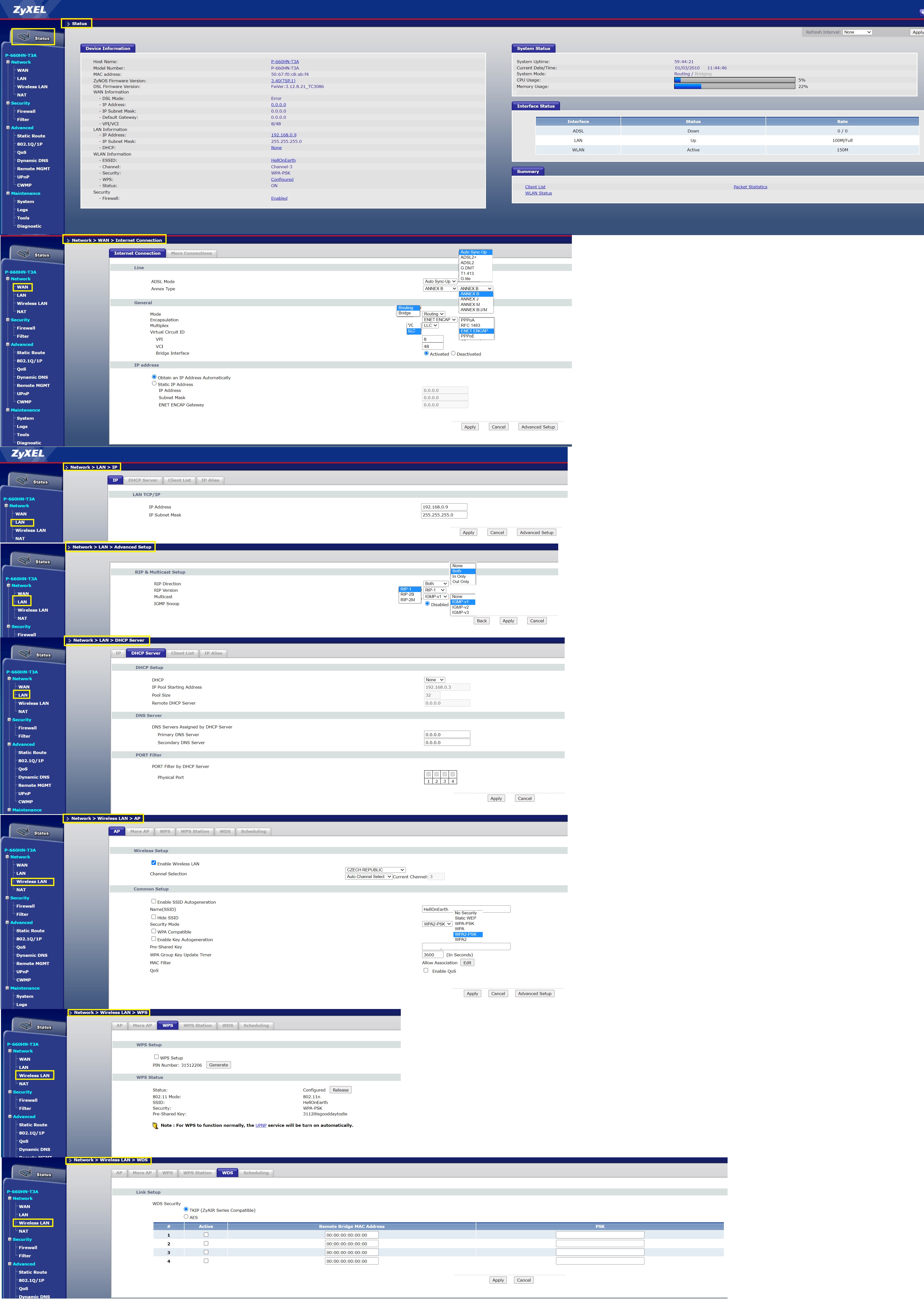 pes bude asi zakopanej v nastaveni toho zyxelu. posílam tady vsechny polozky menu a jednotlive možnosti