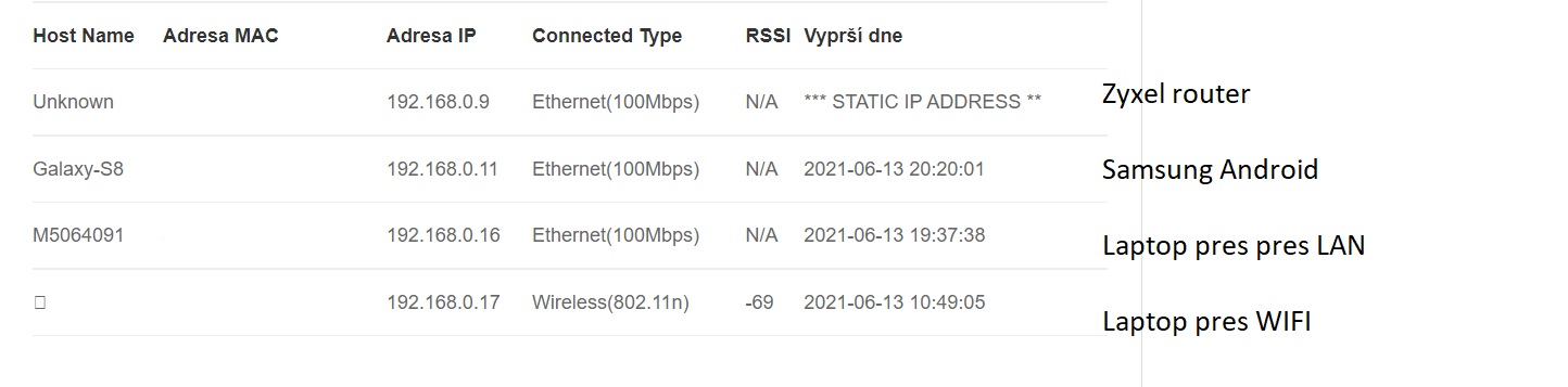 zde je seznam pripojenych zarizeni na DHCP na UPC modem