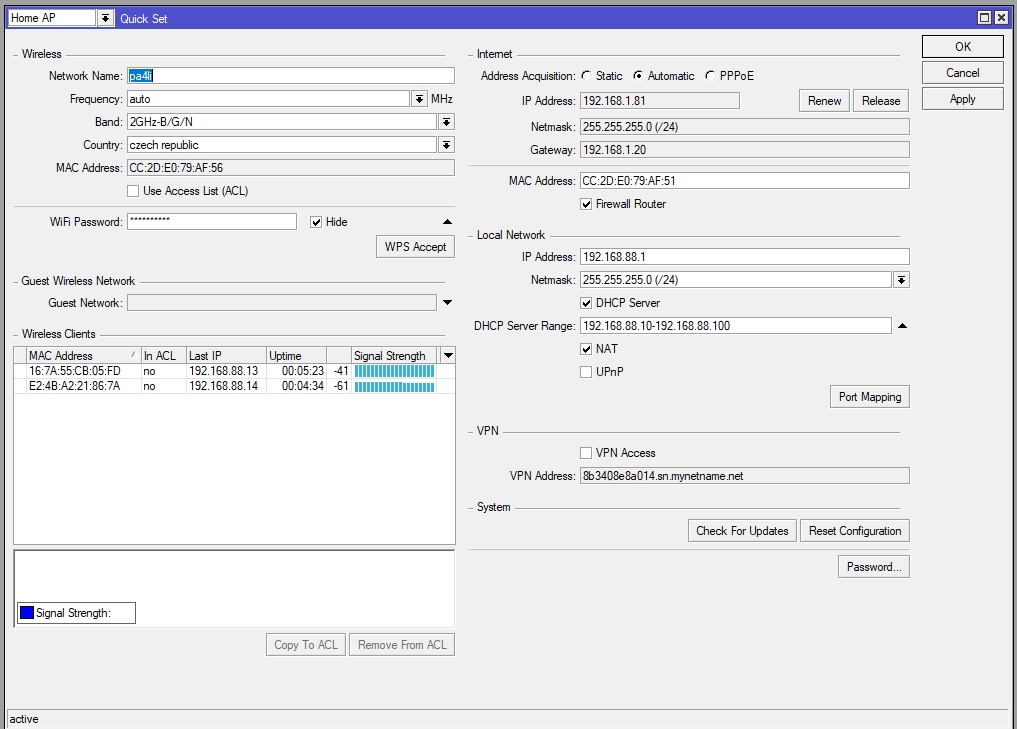 Děkuji za reakci. Pavel to "vyřešil" že dal místo toho mikrotiku nějakej tp link.