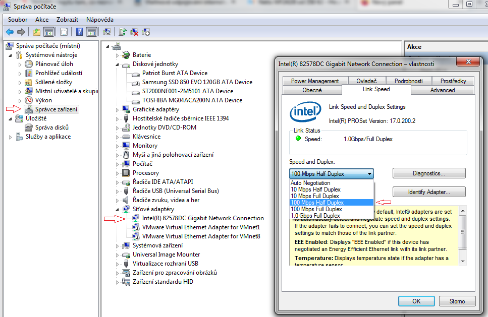 Nebýt toho, že tvrdíš, že jiný stroj na stejném kabelu problémy nemá, sázel bych na ten netis. Změň natvrdo rychlost síťovky - viz. obrázek.
