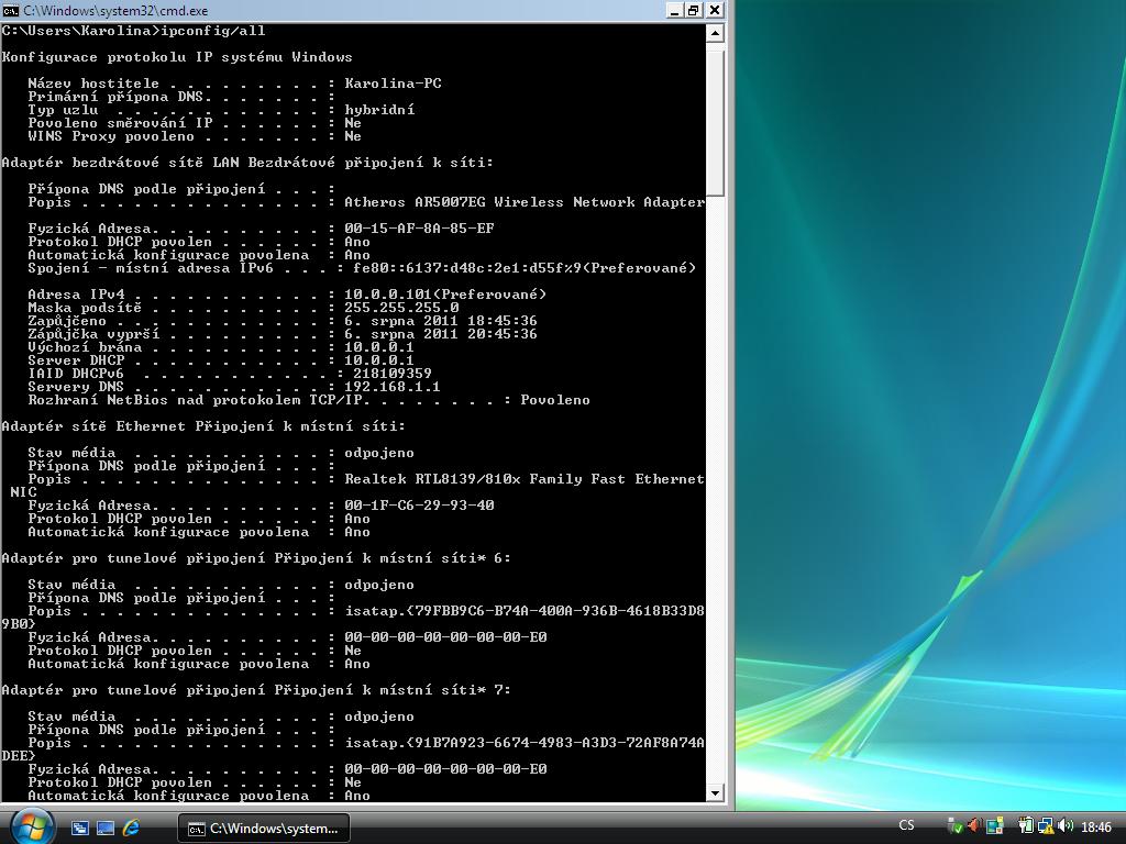 Ani jeden obrázek není relevantní. U pingu to dávej bez http a u ipconfig ukaž adaptér č.1