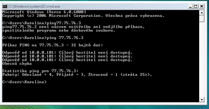 Nějak mi tam nesedí DNS. Zkus "ping 77.75.76.3"
