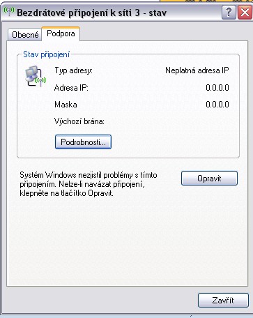 Kruci navíc rozkliknu podporu připojení a je tam neplatná IP adresa:-(