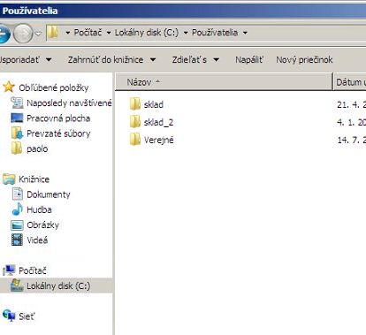 priloha 1. od spodu zobrazuje zlozky "pouzivatelia" C:/users sklad, sklad_2 a verejne
