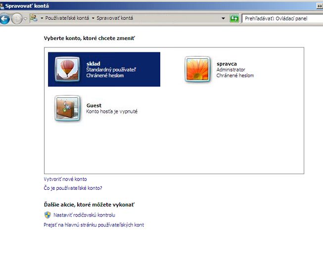 priloha v strede zobrazuje nadefinovane pouzivatelske konta "sklad" a "spravca"