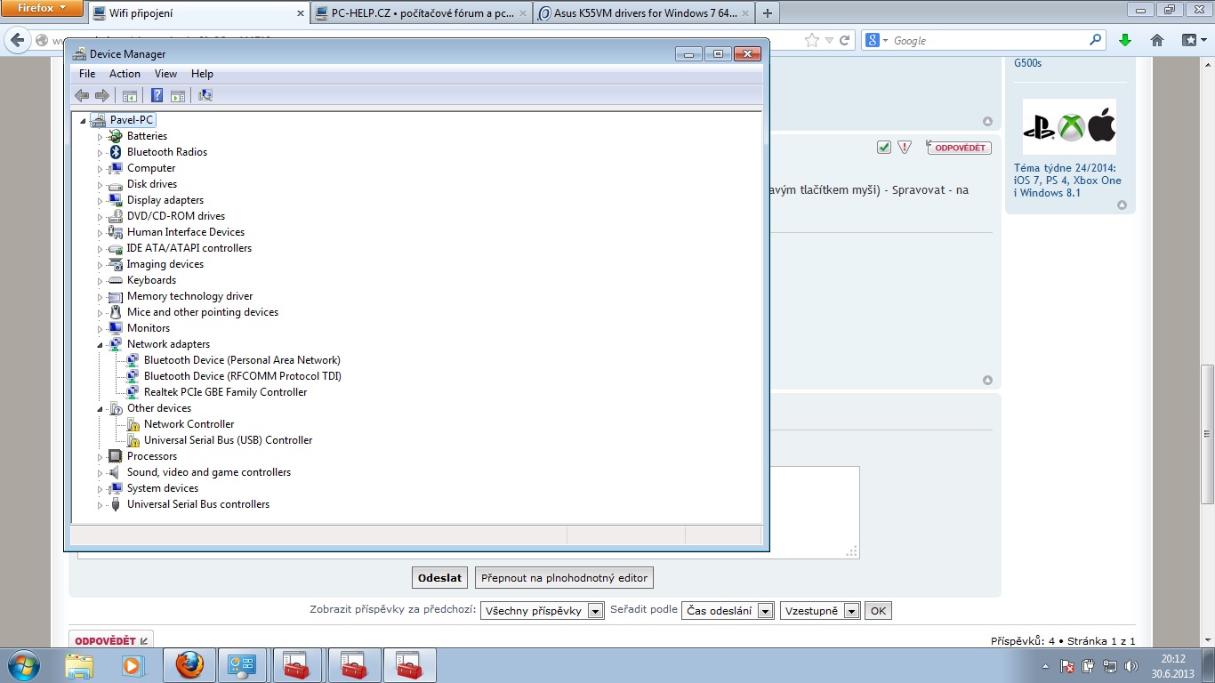Klikni pravým tlačítkem na Network Controller a napiš, co ti nabídne. To samé udělej i v Universal Serial Bus.